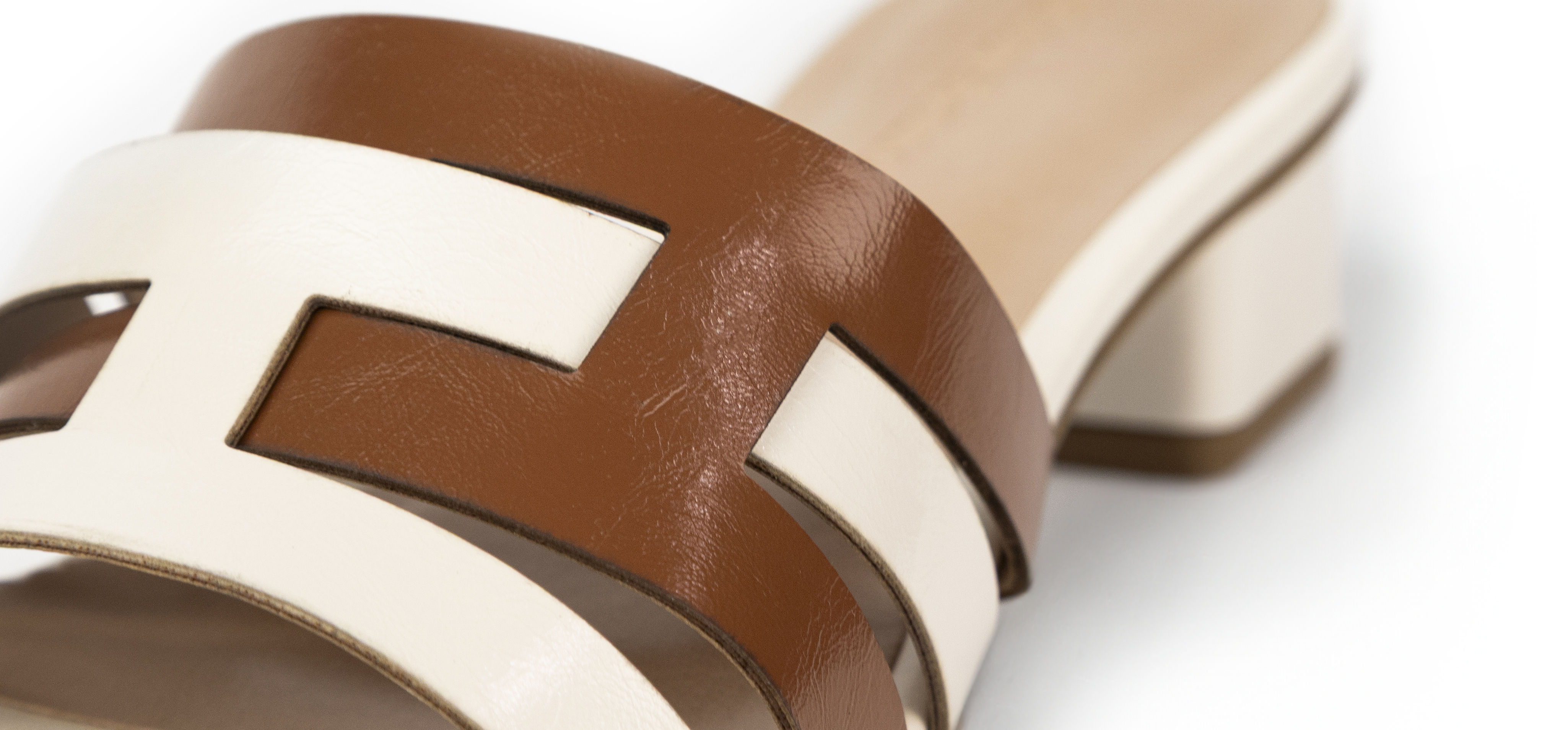Conheça o Tamanco Tiras Off White e Caramelo